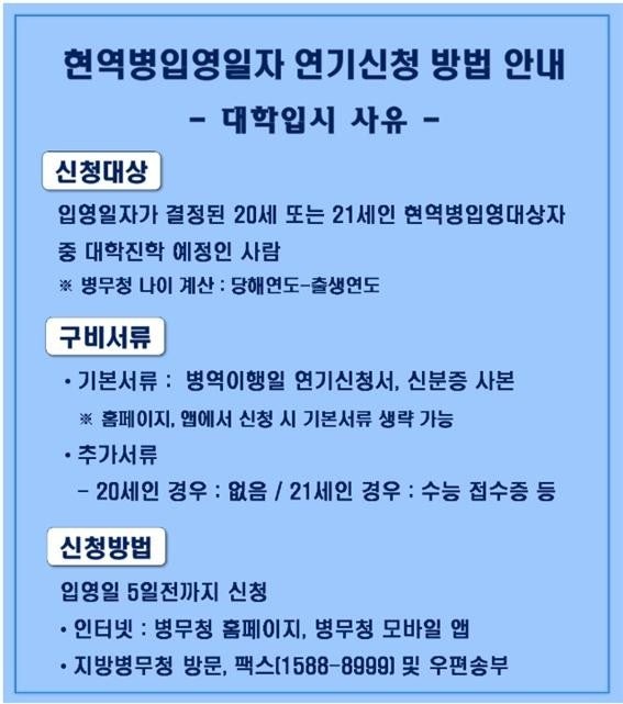 재수 군연기 07년생 재수 준비하고 있는데 입영통지서가 온다면 군입대 연기 서류는 무엇으로